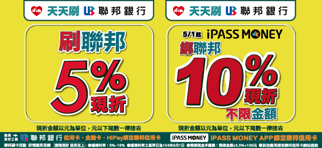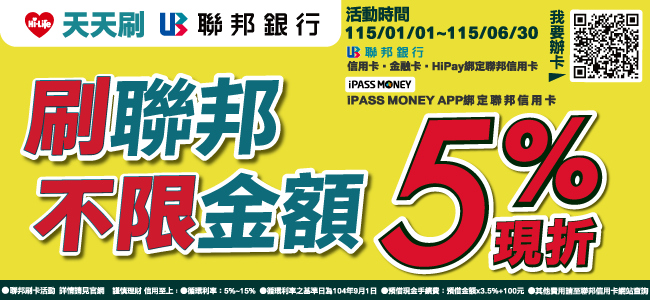 刷聯邦卡不限金額5%現折
