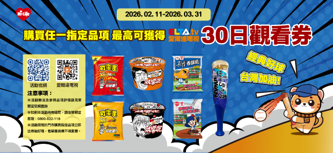 凡購買指定品項 最高可獲得愛爾達30日觀看券