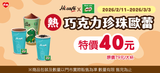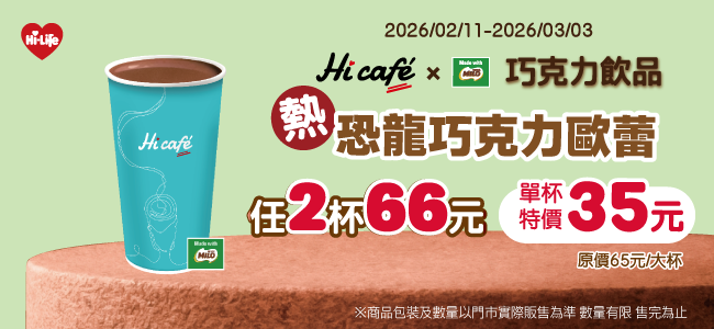 巧克力歐蕾(熱) 單杯特價35元 2杯66元