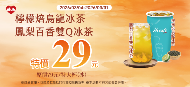 檸檬/百香冰茶單杯特價 29元