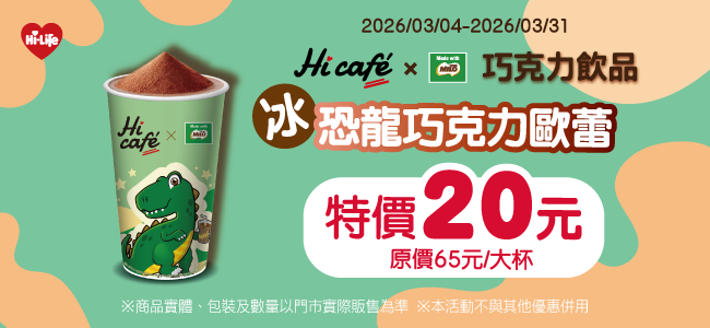 恐龍巧克力歐蕾(冰)特價20元