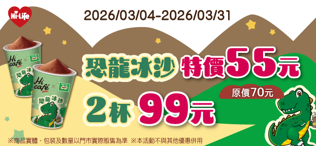 恐龍冰沙特價55元 2杯99元