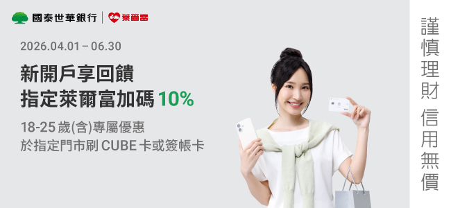國泰新開戶指定校園商圈消費享10%回饋