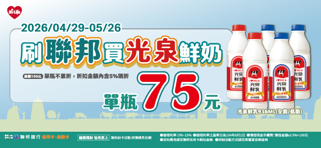 刷聯邦享光泉鮮奶獨家優惠