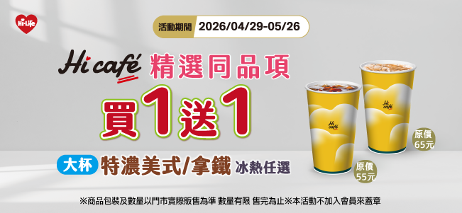 大杯特濃美式/特大杯美式 買1送1