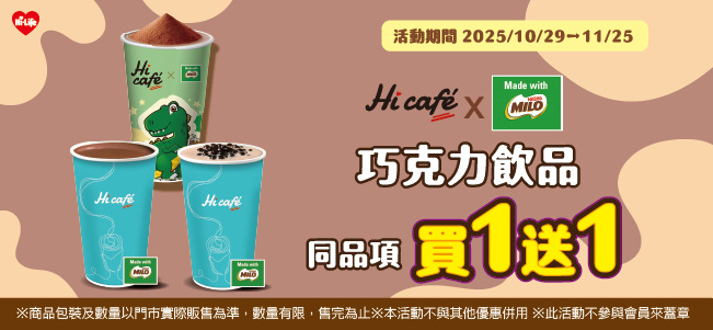HiCafe’ 聯名巧克力飲品 同品項買1送1