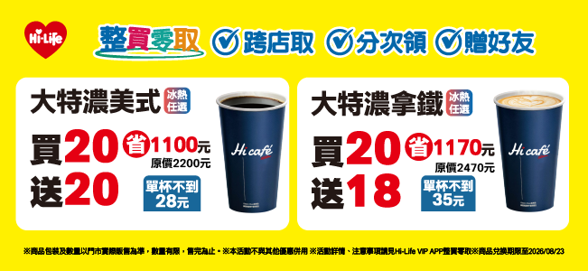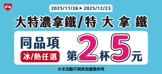 大特濃拿鐵 / 特大拿鐵 同品項 第2杯5元