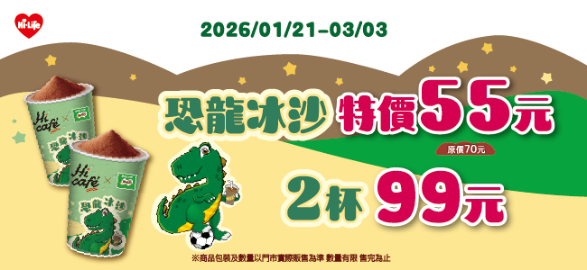 恐龍冰沙 特價55元 2杯99元