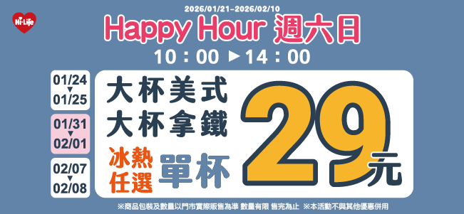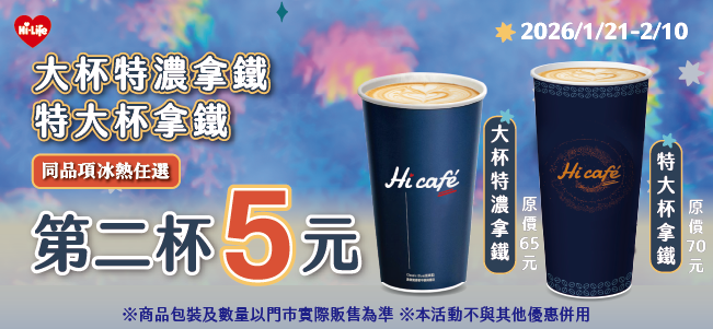 大特濃拿鐵 / 特大拿鐵 同品項第二杯5元
