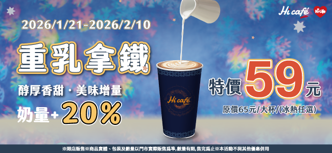 重乳拿鐵特價59元