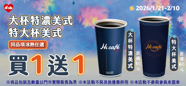 大杯特濃美式/特大杯美式 同品項買1送1
