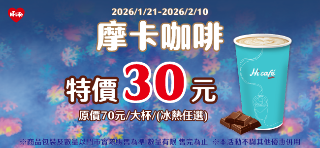 摩卡咖啡特價30元