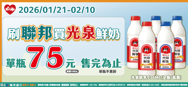 刷聯邦享光泉鮮奶獨家優惠