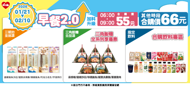 早餐2.0 加料升級,55/66元