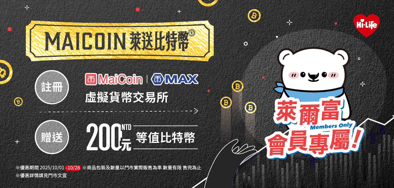 Maicoin X 萊爾富專屬會員活動登場! 快來註冊享好禮~
