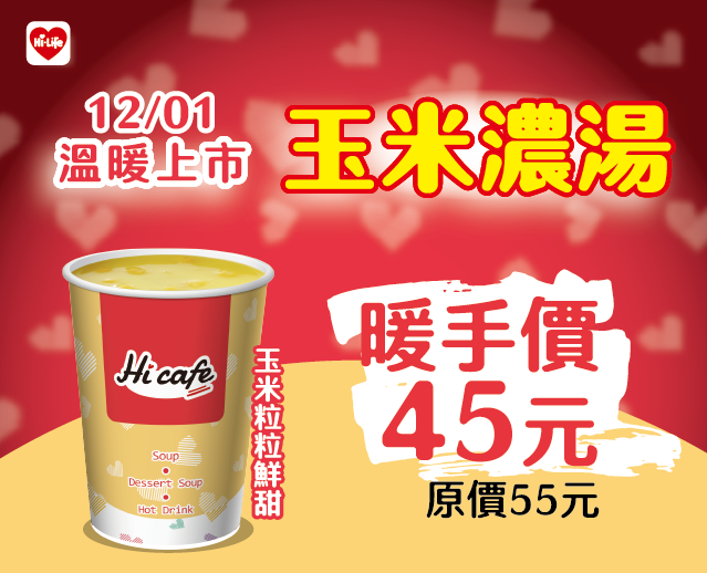 12/01上市玉米濃湯 暖手價45元