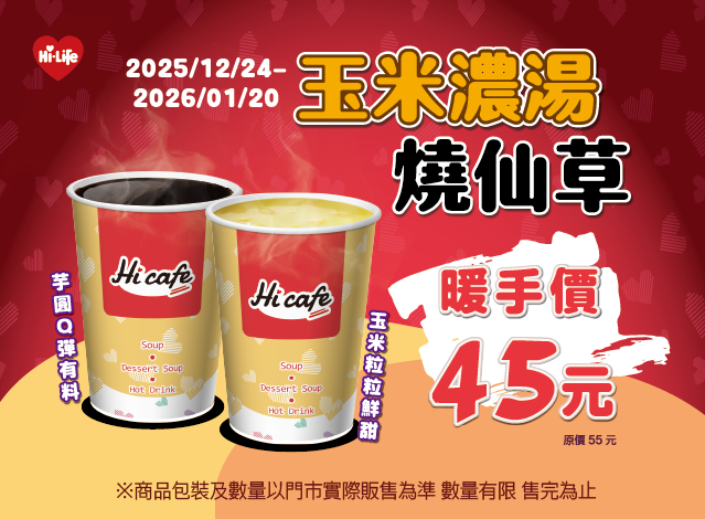 玉米濃湯/燒仙草 暖手價45元