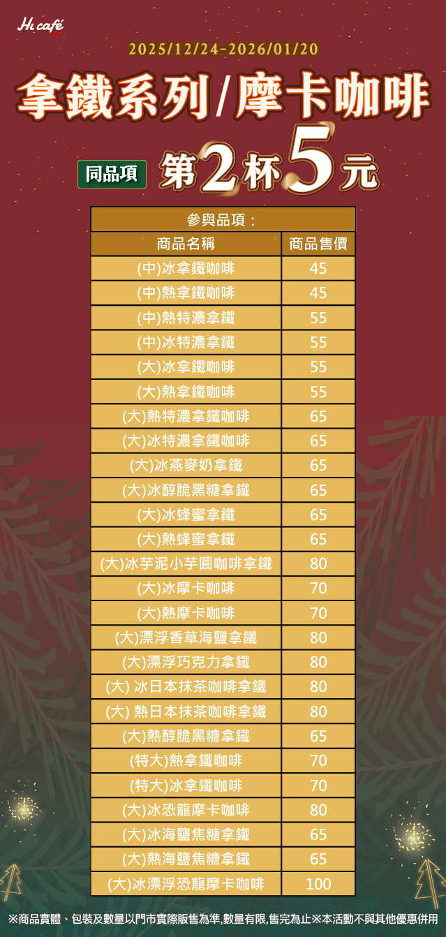 拿鐵系列/摩卡咖啡 同品項第2杯5元