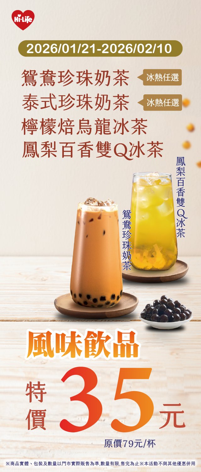 鴛鴦/泰式珍珠奶茶、檸檬/百香特價35元