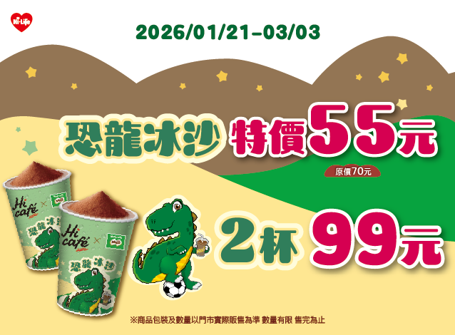 恐龍冰沙 特價55元 2杯99元