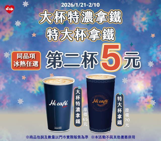 大特濃拿鐵 / 特大拿鐵 同品項第二杯5元