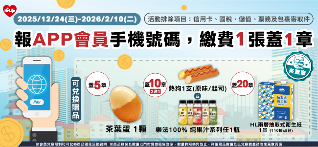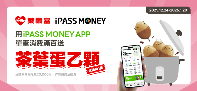 使用iPASS MONEY至萊爾富消費滿100元贈茶葉蛋乙顆