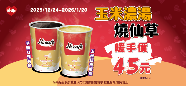 玉米濃湯/燒仙草 暖手價45元
