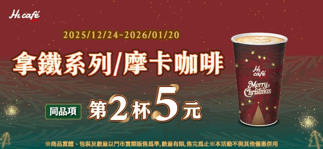 拿鐵系列/摩卡咖啡 同品項第2杯5元