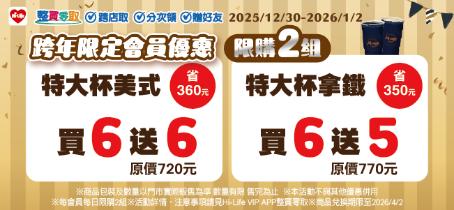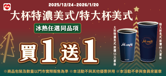 大特濃美式/特大美式 同品項買1送1
